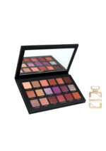پالت سایه DESERT DUSK هدی بیوتی HUDA BEAUTY با الهام گرفتن از گرگ و میش کویر طراحی شده است رنگ های موجود در این پالت سایه یادآور سنگ هایی هستند که در بیابان به چشم می خورند و آسمان نورانی و پرستاره بیابان نیز در طراحی این پالت سایه تاثیرگذار بوده است این محصول دارای 18 رنگ متفاوت است که 8 رنگ آن جلوه مات دارند سایر رنگ های باقی مانده کم بیش جلوه براق و مرواریدی داشته و زینت بخش چشم ها هستند این محصول بافت بسیار سبک و نرم دارد و به راحتی روی پوست می نشیند. این سایه با فرمولاسیون مغذی خود حساسیت ایجاد نکرده و موجب تقویت پوست حساس پلک می گردد این پالت مجهز به آینه بوده و کار را برای بانوان راحت تر نموده است
